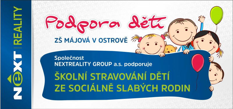 Během letošního roku tým makléřů z pobočky Karlovy Vary opět naspořil peníze a společně se domluvili na další finanční podpoře dětem. V historii pobočky se jedná o třetí projekt a je zaměřen na podporu školního stravování dětí ze sociálně slabých rodin v Základní škole v ul. Májová v Ostrově. ,, Jednání s ředitelem Mgr. Rudolfem Radoněm o pomoci těmto dětem nebylo dlouhé, hned jsme se domluvili a rádi pomohli. Radost mám z toho, že jde o projekt samotných makléřů, kteří s tím nápadem přišli a zrealizovali ho.,,:říká vedoucí pobočky Miroslav Podivín. Navazují na předcházející projekty, které se týkaly také dětí. První projekt byl “Podpora dětského domova v Karlových Varech a Ostrově“, který se zaměřil na opuštěné děti a druhý projekt byla podpora malé Vanesky, která bojuje s nemocí motýlích křídel. Nexťáci v podpoře malých školáků budou pokračovat a jsou s ředitelem školy domluveni na dalších možnostech využití naspořených peněz.