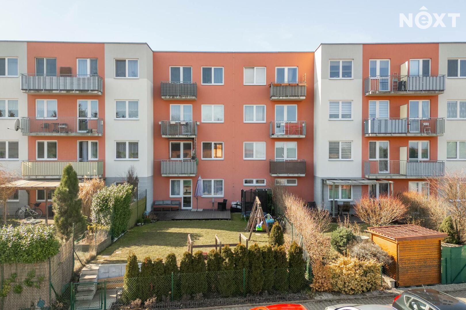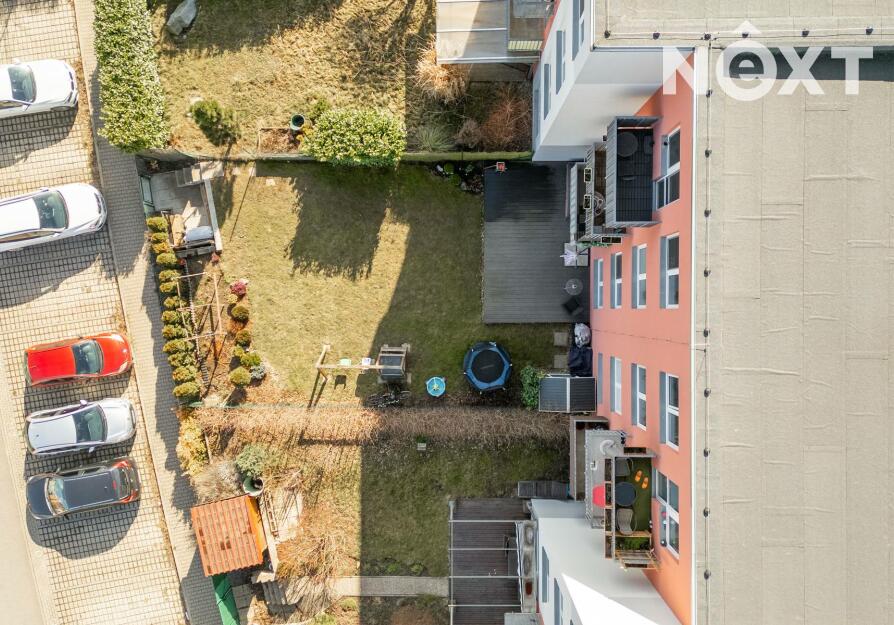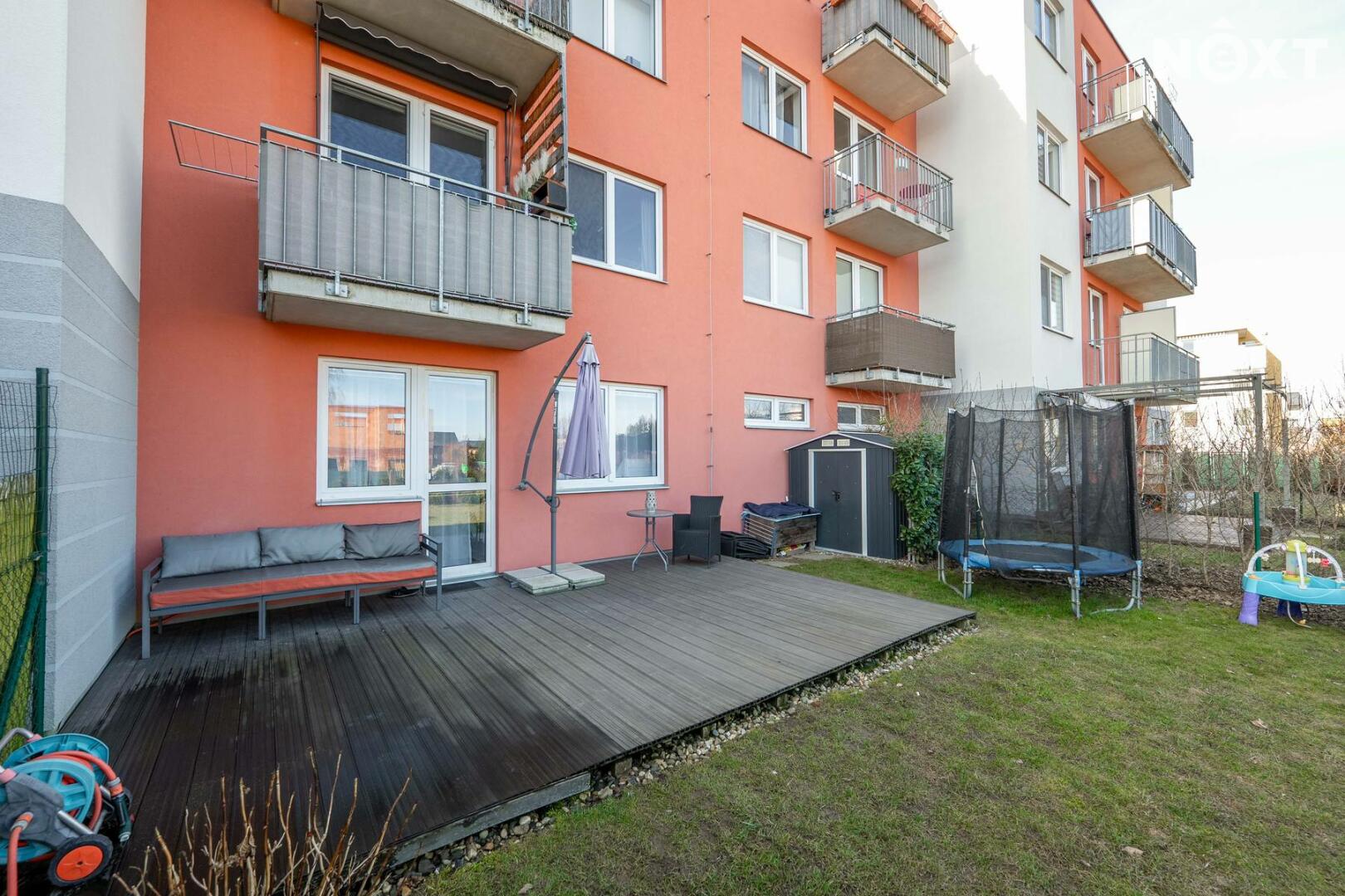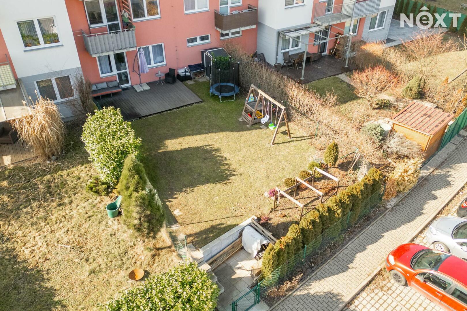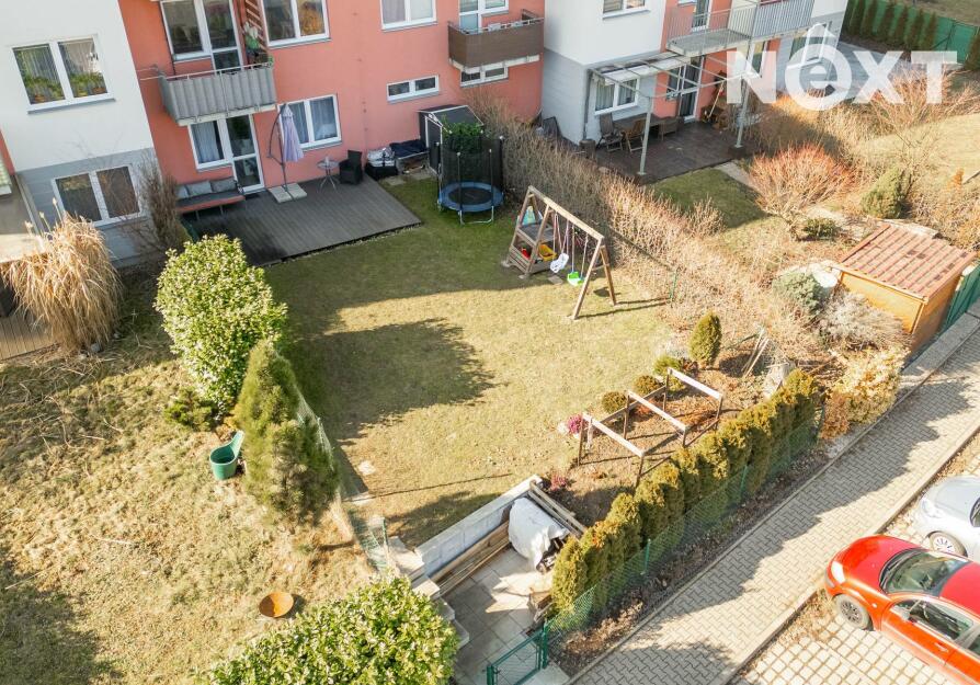 Skutečnou předností bytu je soukromá zahrada o rozloze 151 m², která nabízí dostatek prostoru pro relaxaci, posezení s přáteli, grilování i drobné zahradničení. Součástí zahrady je také prostorná terasa o velikosti 24 m², která poskytuje ideální místo pro letní stolování či odpočinek na čerstvém vzduchu. Na zahradě se nachází i praktický zahradní domek pro uskladnění nářadí či sezónních věcí.