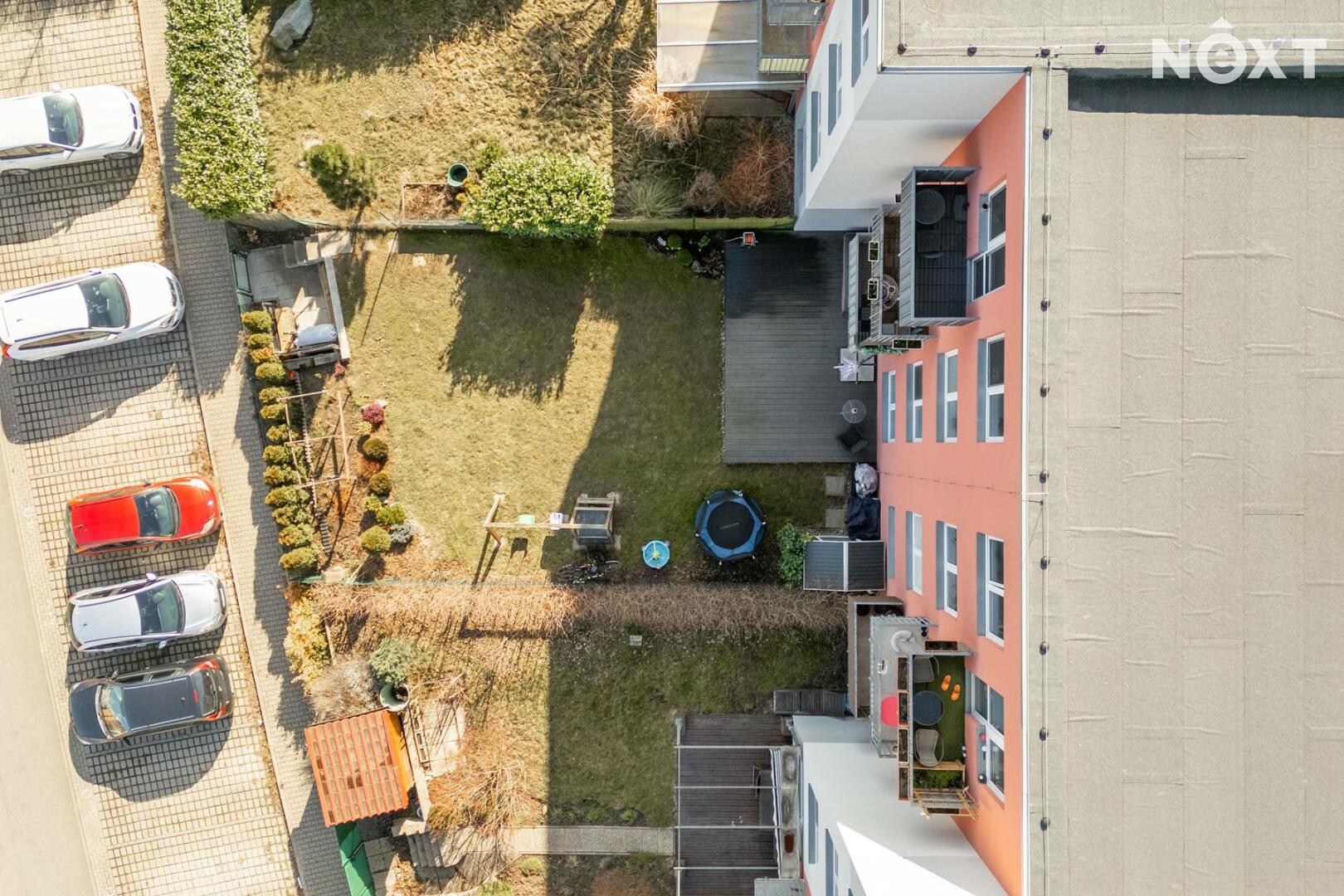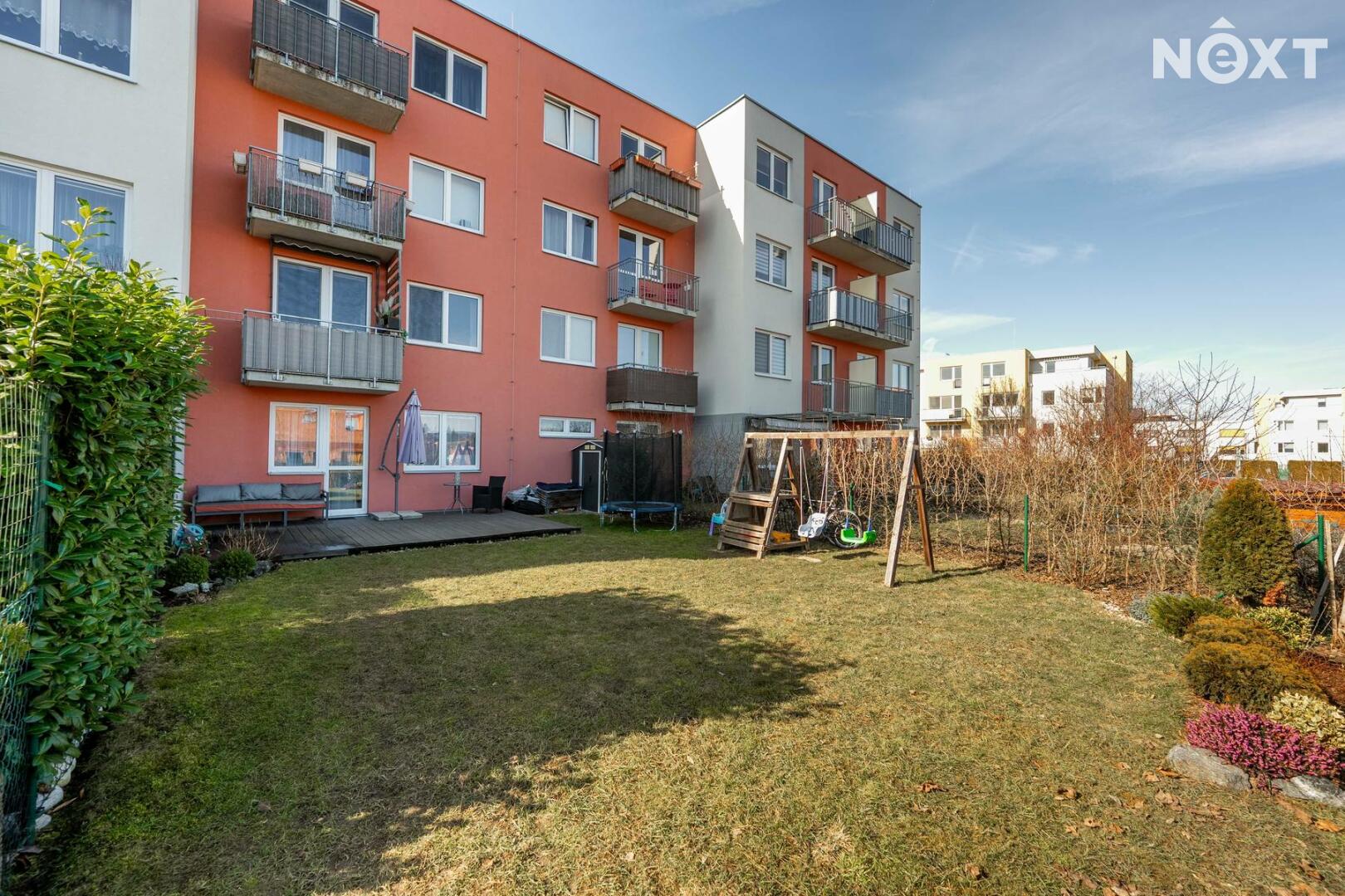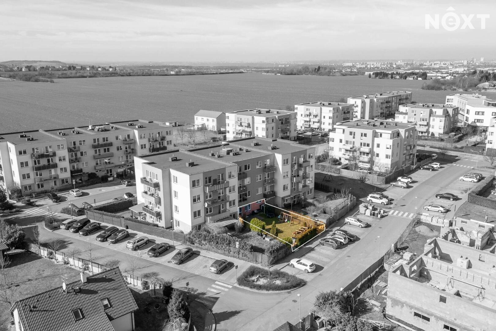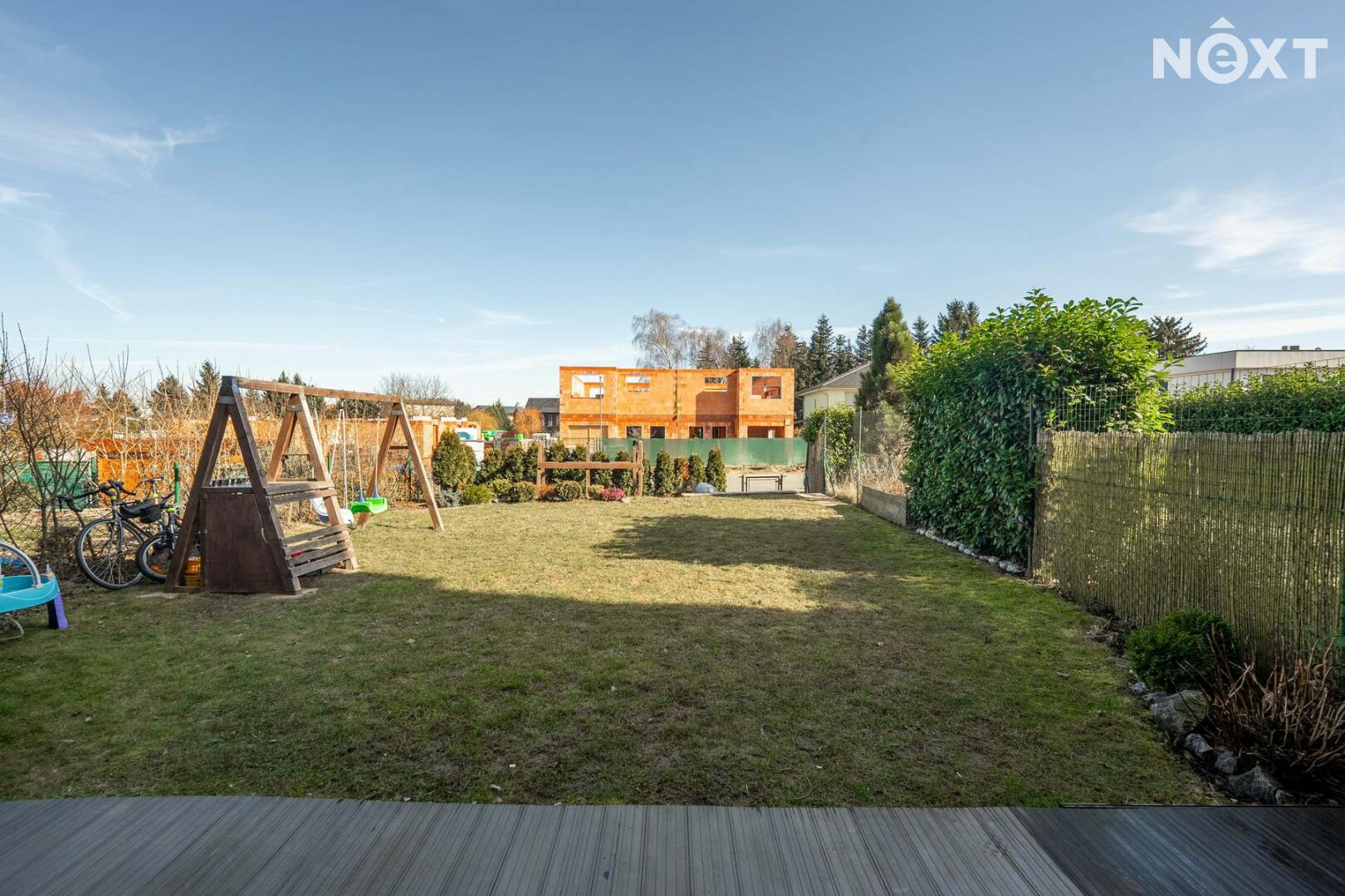 Skutečnou předností bytu je soukromá zahrada o rozloze 151 m², která nabízí dostatek prostoru pro relaxaci, posezení s přáteli, grilování i drobné zahradničení. Součástí zahrady je také prostorná terasa o velikosti 24 m², která poskytuje ideální místo pro letní stolování či odpočinek na čerstvém vzduchu. Na zahradě se nachází i praktický zahradní domek pro uskladnění nářadí či sezónních věcí.